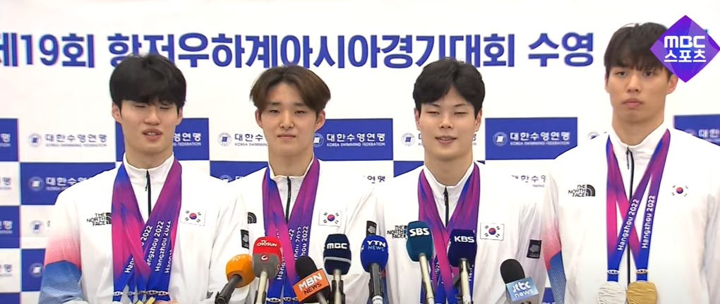 아래는 자랑스러운 아시안게임 수영 대표선수 분들과, 백인철 접영 선수입니다.
