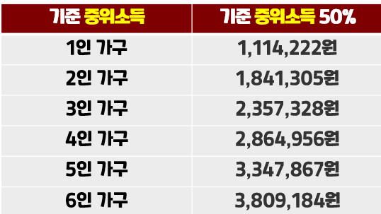 첫 번째는 소득이 기준 중위소득의 50% 이하인 가구,