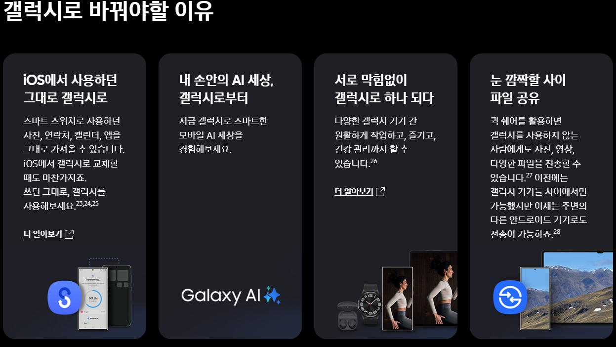 그리고, 이번에 나오는 갤럭시S24 시리즈는 삼성의 새로운 AI 기능인 '삼성 가우스'를 탑재하고 있습니다. 이러한 삼성 스마트폰의 AI는 사진 편집, 웹페이지 요약, 이메일 작성 지원, 실시간 통화 번역 등 다양한 작업을 간소화하고 편리하게 해준다고 합니다.