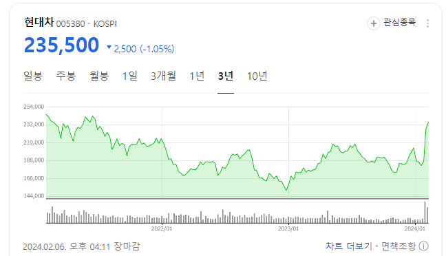 현대차 차트를 보면이렇게 쭉 내려오는 모습을 보이다가도 다시 한번 반등의 기미를 보이는 모습을 나타내고있네요. 특히 3년 내에 거래량을 보시면 최근에 저PBR 주, 관련주로 주목을 받으면서 역대급 거래량을 터트리는 모습을 보실 수 있습니다.