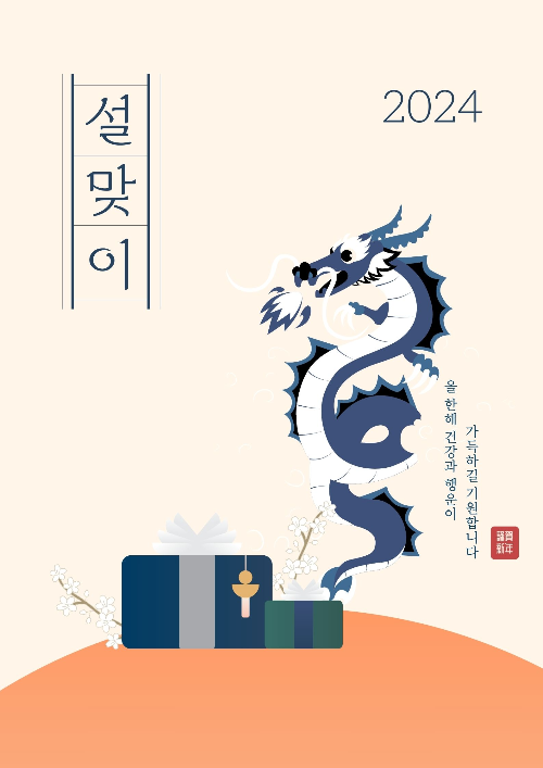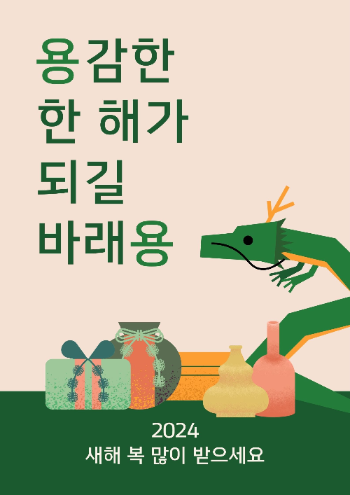 이렇게 다양하게 선물을 들고오는 용처럼 표현해도 좋은데, 아무래도 갑진년 해인지라 용이 멋있게 표현되며 새해인사를 할 수 있어서, 더욱 다른 해보다 표지가 잘 뽑히는 것 같습니다.