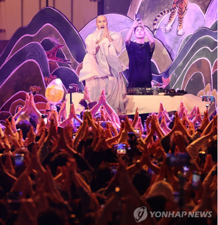 장삼을 입고 EDM 디제이로 나서셔서 젊은이들의 이목을 사로잡으셨거든요. '부처핸섬'을 외치시며 제자리 뛰기를 하시자 현장에 모인 수많은 청년들이 환호성을 지르며 열광적으로 따라 움직였다고 합니다. 평소 윤성호님께서는 권위에 구애받지 않고 자유분방한 모습을 보이시는데요. 이번에도 형식을 과감히 탈피한 새로운 접근 방식으로 해방감을 선사하셨습니다.
