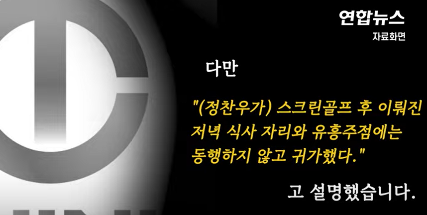 정찬우 씨 측은 "스크린 골프장에만 동석했으며 이후 저녁 식사 자리와 유흥주점에는 동행하지 않았다"고 밝혔습니다. 경찰 조사에서도 이와 같은 내용을 진술했다고 합니다. 반면 길 씨의 소속사는 현재 아티스트와 연락이 되지 않아 확인이 어렵다는 입장을 전했습니다.