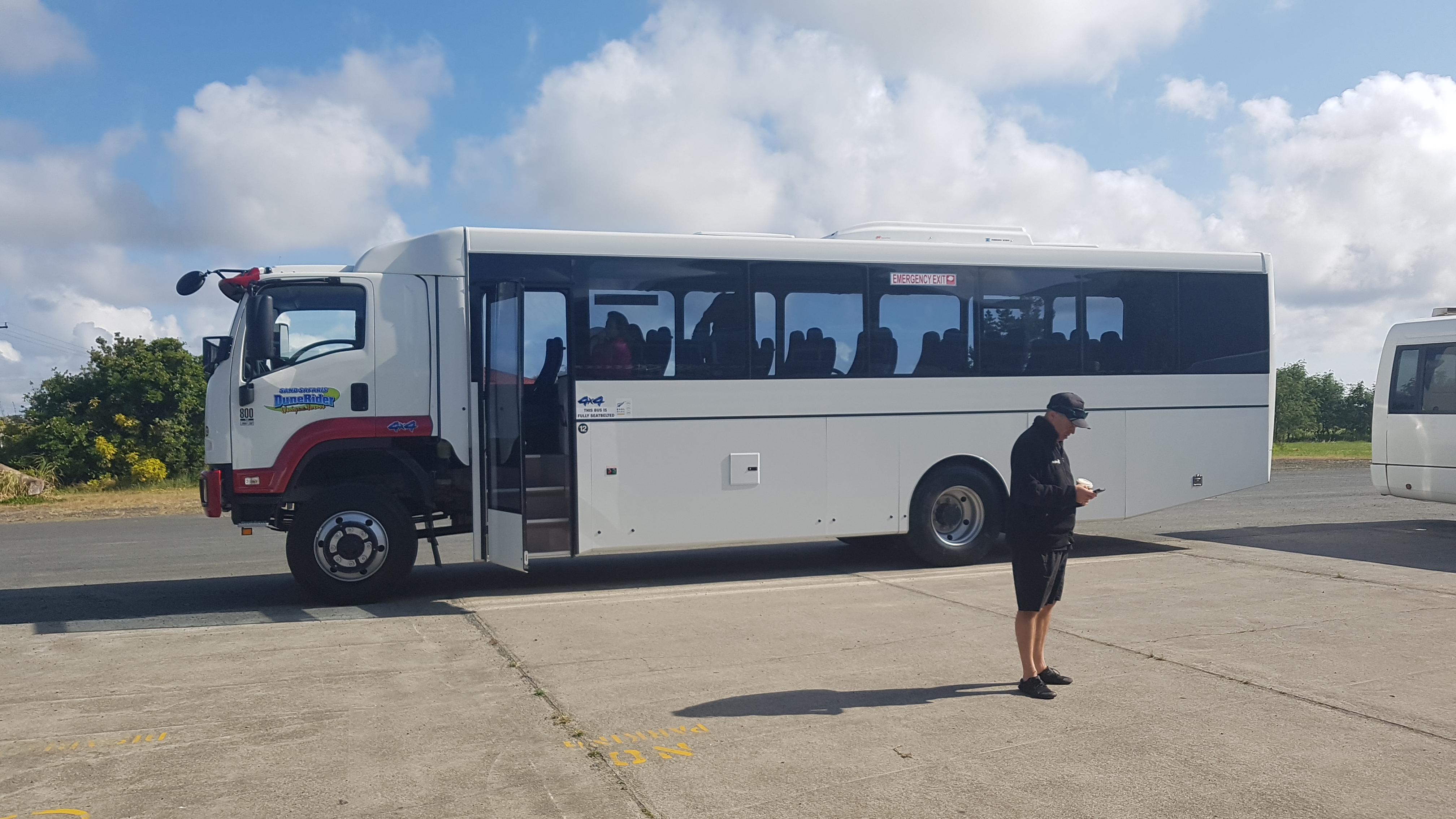 샌드사파리 투어 차는 이렇게 웅장하게 생겼다. 일반 투어버스로는 모래에 박혀버리기때문에, 사륜구동+버스같은 모습을 한 거대한 차량이 우릴기다리고 있었다.