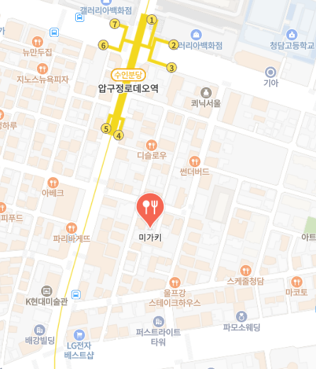 미가키는 서울 강남구 선릉로158길 14-2에 위치해 있으며, 압구정로데오역 근처에 있습니다. 영업시간은 월요일부터 토요일까지 오전 10시부터 오후 10시까지이며, 오후 2시부터 6시 30분까지는 브레이크타임입니다. 런치는 12시, 디너는 6시 30분에 시작합니다. 미가키는 예약제로 운영되므로 꼭 예약 후 방문하시기 바랍니다.