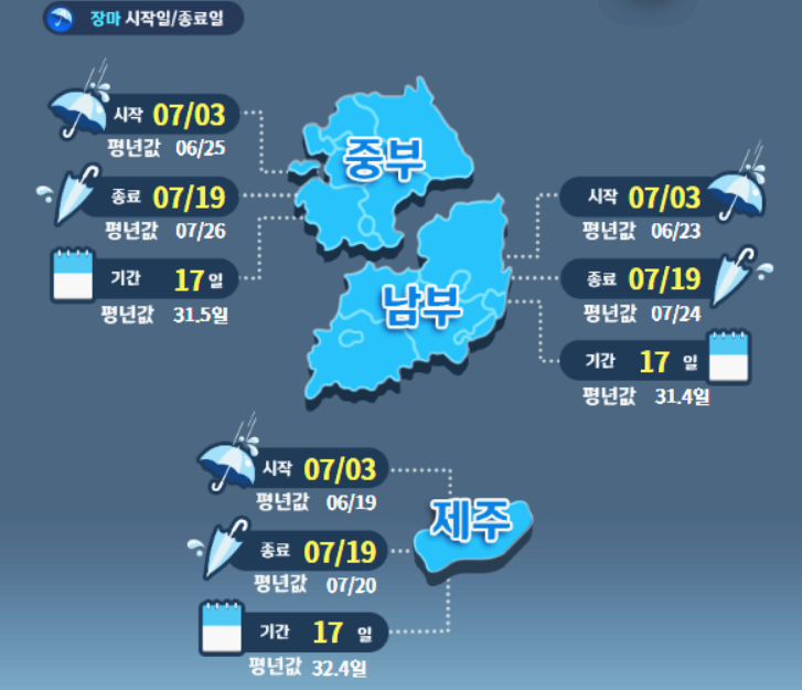 1. 2024년 장마 기간 예상