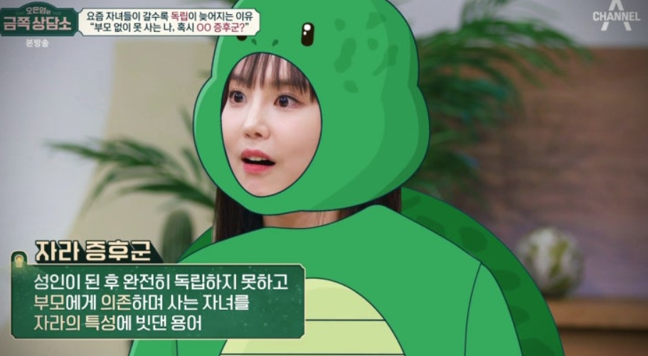 이에 오은영 박사는 성인이 되어도 부모 곁을 떠나지 않는 것을 '자라 증후군'이라고 하며, 부모에게 계속 의존해 사는 자녀들을 설명했어요. 오은영 박사는 박찬숙 감독이 선수 생활 동안 수많은 어려움과 고난을 이겨냈지만, 정작 딸의 인생에서는 다른 모습을 보인다고 지적했습니다. 박찬숙 감독은 딸이 배우로 노력하며 힘들게 사는 모습이 싫다고 말했어요. 자신처럼 스스로 자처하며 살지 말고, 딸은 남편에게 의지하며 살기를 바란다고 했습니다.
