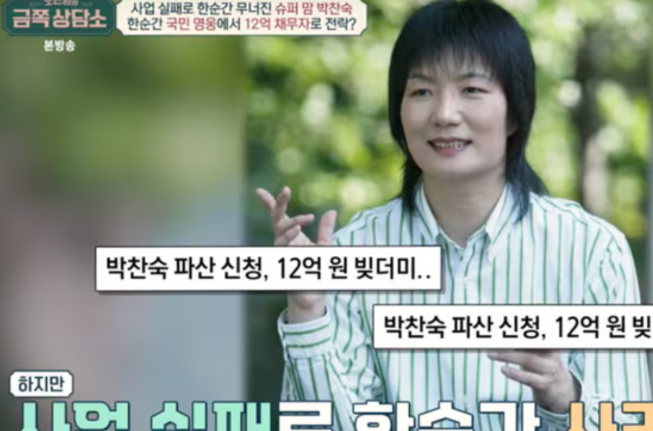 박찬숙 감독은 친구의 사업 제안을 받아들였다가 부도가 나면서 법원 출두 명령과 협박 전화, 채권자들의 방문 등으로 힘든 시간을 보냈다고 해요. 결국 부모님 집을 담보로 잡으며 12억 원의 빚을 떠안고 파산 소식이 언론에 전해졌던 당시를 떠올리며, 자는 것도 두려웠고 일어날 때마다 더 무서웠다고 말했습니다.