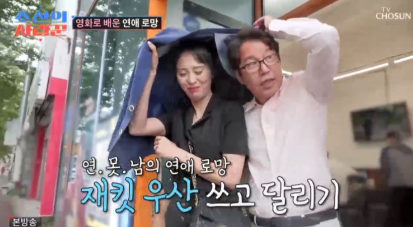 오픈식 이후, 심현섭 씨와 그녀는 비가 억수로 쏟아지는 날에 해변가로 나갔습니다. 심현섭 씨는 영화에서처럼 재킷 우산을 쓰고 그녀와 함께 비 속을 뛰어보고 싶어 했습니다.