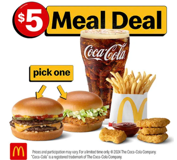 이런 매출 부진을 극복하기 위해 맥도날드는 미국 국내에서 5달러 세트 메뉴 도입을 검토 중이라고 합니다. 맥치킨 또는 맥더블 버거와 감자튀김, 음료로 구성된 이 세트 메뉴는 2024년 6월 25일부터 미국 내 맥도날드 매장에서 구입할 수 있게 될 예정이라고 합니다.