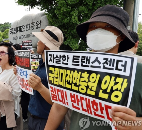 안장식 당일, 대전현충원 앞에서는 변희수 하사의 현충원 안장을 반대하는 집회가 열렸습니다. 시민단체와 사회단체들은 변 하사의 순직 결정을 비판하며 진상조사위원회 설치를 요구했습니다. 이들은 변 하사의 순직 결정이 정치적 외압에 의한 것이라고 주장하며, 현충원 안장은 부당하다고 말했습니다. 하지만 큰 충돌 없이 집회는 마무리되었습니다.