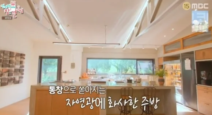 이영자 님의 세컨하우스는 자연과 조화를 이루는 외부 색상과 내부 인테리어가 인상적입니다. 넓은 거실과 통창으로 들어오는 자연광, 그리고 고급스럽고 자연과 어울리는 색상들이 어우러져 보는 이들로 하여금 감탄을 자아내게 합니다. 이영자 님은 명품 대신 주방에 플렉스했다고 하죠. 나무 진열장에 들어간 컵들과 각종 식기 도구들이 그녀의 미적 감각을 잘 보여주고 있습니다.