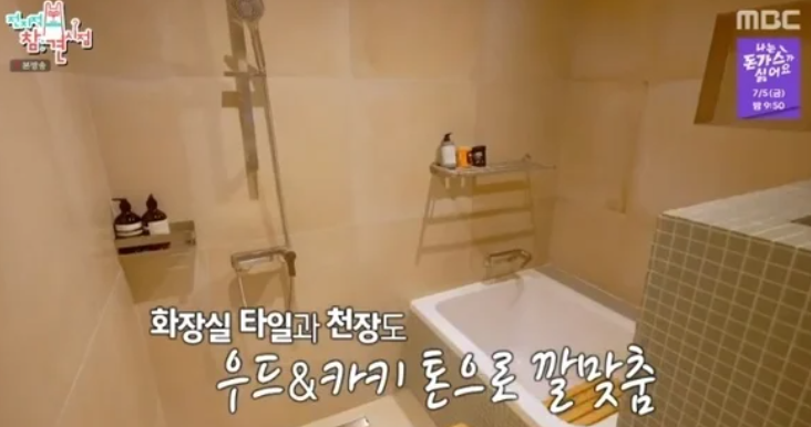 거실은 큰 통창으로 되어 있어 자연광이 아름답게 들어오도록 연출되어 있고, 전체적으로 우드 베이지와 카키톤을 사용해 고급스러우면서도 자연과 어울리는 색상을 선택했어요. 이영자 님의 세컨하우스는 컬러감이 주는 안정감과 함께 작은 디테일까지 놓치지 않은 인테리어가 돋보입니다. 소와 돼지가 그려진 작은 소품부터 팬들에게 받은 선물, 화장실 팻말까지 하나하나 그녀의 손길이 닿아 있음을 느낄 수 있습니다.