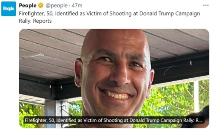 조시 샤피로 펜실베이니아 주지사는 이번 총격 사건에서 희생된 코리 콤퍼라토레에 대해 언급했습니다. 그는 50대 전직 소방관으로, 그날 가족을 보호하기 위해 자신의 몸을 던져 총알을 막아냈습니다. 샤피로 주지사는 콤퍼라토레가 아내와 두 딸과 함께 현장에 있었다고 밝혔습니다. 그의 아내는 남편이 영웅으로 죽었다며, 그가 가족을 위해 몸을 날렸다는 사실을 모두에게 알려달라고 부탁했습니다. 콤퍼라토레는 지역에서 20년 넘게 소방관으로 일하면서 많은 사람들에게 도움을 주었던 인물입니다. 그의 동료 랜디 리머는 그를 "항상 누군가를 도와주려는 좋은 사람"이라고 기억하며, 그의 헌신과 용기를 높이 평가했습니다.