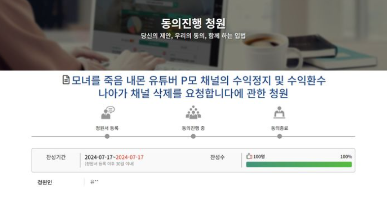 이번 청원은 30일 동안 5만 명 이상의 동의를 받으면 소관 국회 상임위원회에 회부됩니다. 현재 이 청원은 많은 사람들의 관심을 받고 있으며, 사이버렉카 유튜버들에 대한 제재 요구가 점점 커지고 있습니다. 유튜브 코리아는 이전에 유튜버 쯔양에 대한 협박 및 금품 갈취 혐의로 구제역, 전국진, 카라큘라 등의 채널에 대해 수익화 중지 조치를 내린 바 있습니다. 이번 사건 역시 비슷한 조치를 요구하는 목소리가 커지고 있습니다.