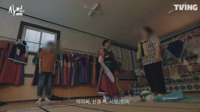 첫 번째 에피소드에서는 윤미영 무당이 등장합니다. 사례자는 시아버지 장례식 이후부터 몸이 아프고 귀신을 보기 시작했습니다. 알고 보니, 남자 귀신은 남편의 직장 동료로 교통사고로 세상을 떠난 사람이었습니다. 윤미영 무당이 굿을 해주면서 사례자는 편안해졌다고 합니다.