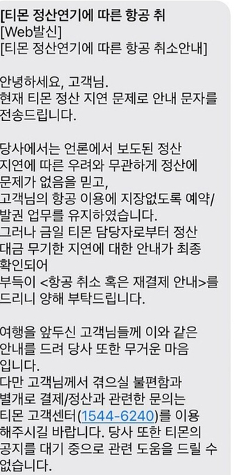 티몬과 위메프의 정산 지연 사태로 인해 소비자들도 큰 피해를 입고 있습니다. 한 예로, 티몬을 통해 비행기 티켓을 예약한 소비자가 출발 전날 갑작스럽게 티켓 취소 통보를 받는 경우가 발생했습니다. 이는 여행사들이 티몬으로부터 정산금을 받지 못해 어쩔 수 없이 취소를 통보한 것입니다.