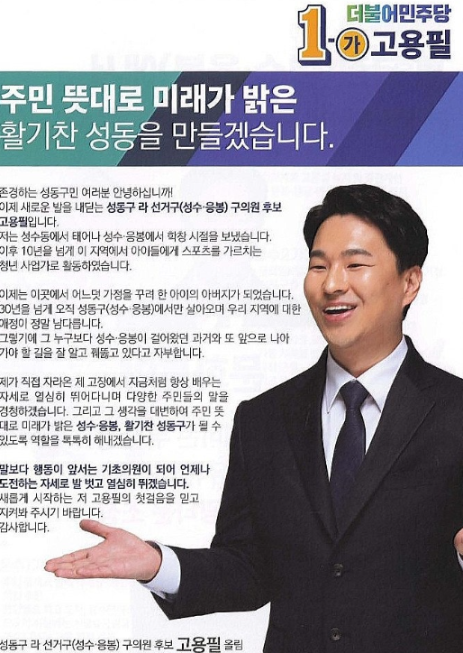 고용필 의원님은 성동구의 열정적인 정치인으로, 현재 성동구의회 제9대 의원으로 활약하고 계십니다. 과거 더불어민주당에 소속되었으나, 현재는 무소속으로 활동 중입니다.