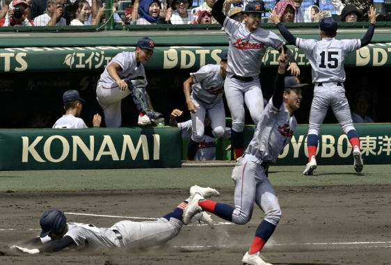 이번 대회의 결승전은 그야말로 손에 땀을 쥐게 하는 경기였습니다. 교토국제고등학교와 도쿄도의 대표 간토다이이치고가 맞붙은 이날 경기는 양 팀 모두 9회까지 단 한 점도 내지 못하며 치열한 공방전을 벌였습니다. 정규 이닝에서 승부를 가리지 못한 두 팀은 연장전에 돌입했고, 10회 초 교토국제고는 대타로 나선 니시무라 카즈키의 좌전안타로 무사 만루의 기회를 잡았습니다.