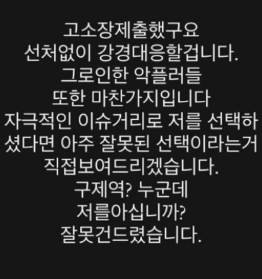 나나는 자신의 인스타그램을 통해 구제역을 직접 언급하며, 그가 자신을 모른다는 점을 강조했습니다. "구제역? 누군데 저를 아십니까?"라는 문구는 단순한 불쾌감을 넘어, 그가 저지른 행위의 심각성을 깨닫게 하려는 의도로 보입니다.