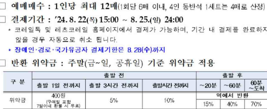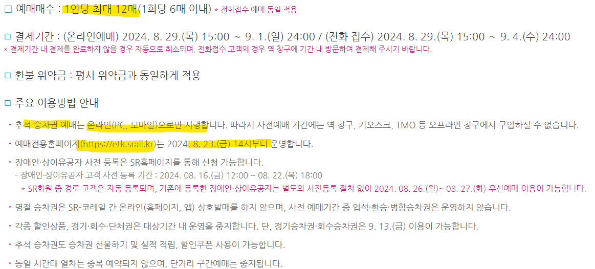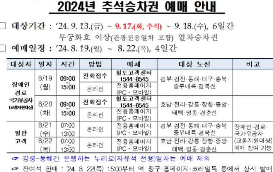 1. 2024년 추석 기차표 예매 일정