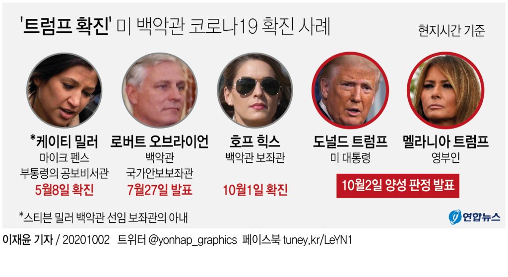 지금까지 코로나와 마스크를 무시하던 태도로 일관하던 트럼프, 앞으로 자가격리가 끝나고 난 후에 행보가 기대됩니다.