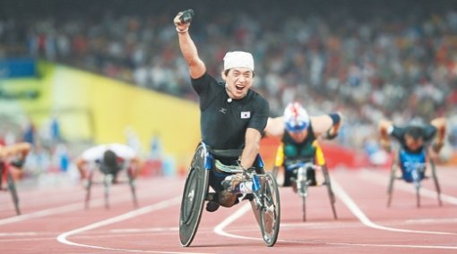 베테랑 휠체어 레이서인 유병훈 선수는 소아마비를 극복하고 휠체어 육상 선수로서 이번 대회에 출전합니다. 52세의 나이에도 불구하고 100m, 400m, 800m, 휠체어 마라톤 네 종목에 도전합니다.
