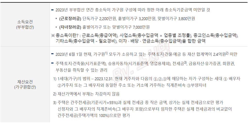소득 요건도 중요한데요, 2023년 기준으로 단독 가구는 2,200만 원 미만, 홑벌이 가구는 3,200만 원 미만, 맞벌이 가구는 3,800만 원 미만이어야 합니다. 자녀장려금의 경우, 부부 합산 소득이 7,000만 원 미만이어야 자격이 주어집니다. 재산 요건 역시 고려해야 합니다. 2023년 6월 1일 기준, 가구원의 재산 합계액이 2.4억 원 미만이어야 합니다. 여기서 말하는 재산에는 주택, 토지, 건물, 예금 등이 포함되며, 부채는 차감되지 않으니 유의하세요.