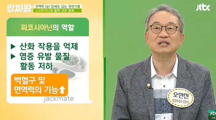 스피루리나의 주요 성분중하나인 피코시아닌 성분은 산화작용을 억제시키며 염증유발 물질들에 대한 저항력을 가지고 있어서 염증을 유발하는 것을 막아줍니다. 또한 피코시아닌은 백혈구와 체내 면역력의 기능을 상승시키는 효과까지 가지고 있다고 하니, 효과가 엄청나다고 할수있습니다. 피코시아닌은 스피루리나에 포함된 청록색을 띈 특성을 가지고 있다고 하는데요, 생김새는 조금 익숙하지 않을 수 있지만, 피코시아닌으로 인해서 얻는 우리의 항암효과를 생각하면 안먹을수가없겠네요. 암세포를 잡고 면역력까지 크게 올리는 스피루리나의 효과. 정말 강력한 성분들을 가지고 있었습니다.