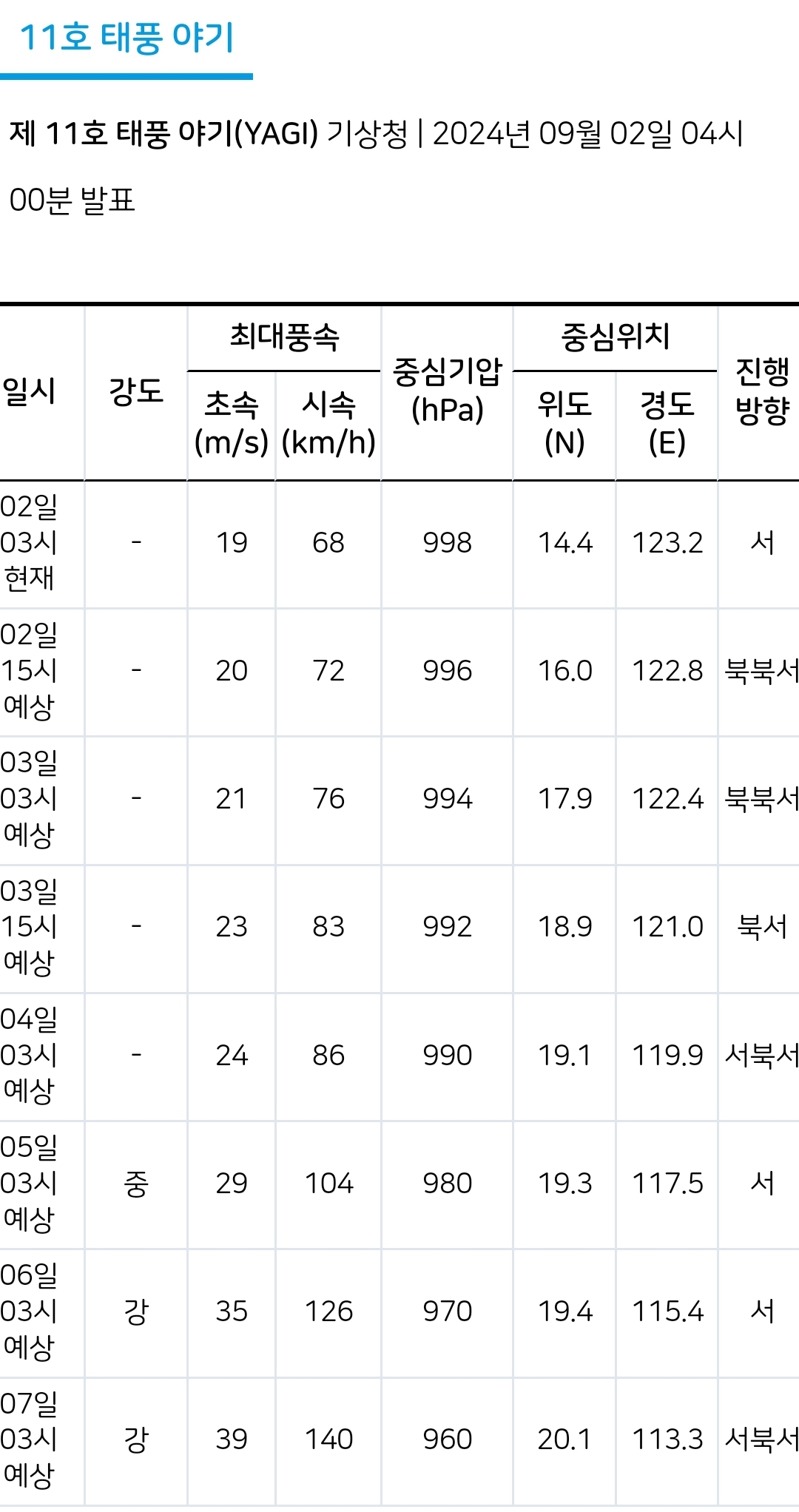 | 11호 태풍 야기 예상 경로 진로 정보 (2) | 2024.08.30 |