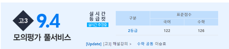 고1, 고2 학생들의 9월 모의고사 등급컷