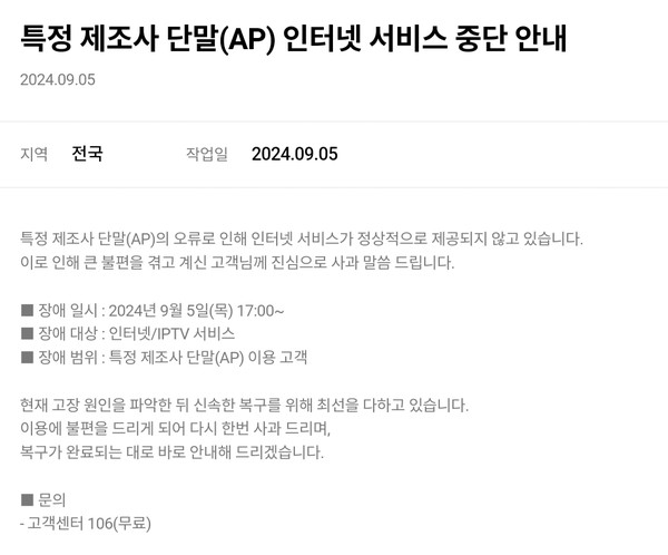 2024년 9월 5일에 발생한 이 대규모 인터넷 장애는 주로 미디어텍(Mediatek)이라는 칩셋을 사용하는 AP(액세스 포인트) 장치에서 발생한 문제로 밝혀졌습니다. 이 미디어텍 칩셋은 통신사들이 제공하는 셋톱박스나 인터넷 라우터에 사용되는 중요한 장비 중 하나입니다.