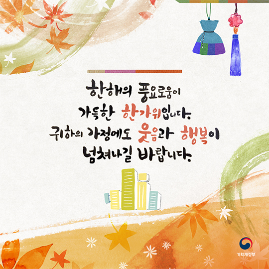 - "긴 한가위 연휴 동안 푹 쉬시고, 남은 한 해도 건강하고 행복하게 보내시길 바랍니다."