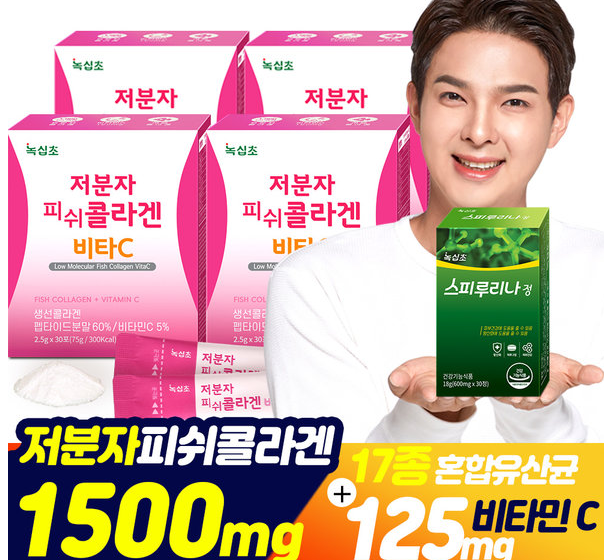 콜라겐 추천 2 : [녹십초] 저분자피쉬콜라겐 비타C30포x4박스(4개월)+스피루리나